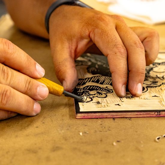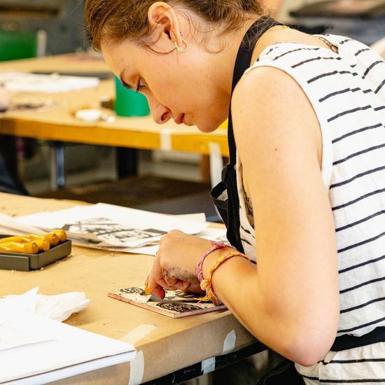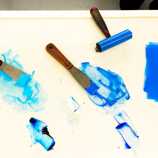 This course covers several printmaking techniques that can be employed in a fully equipped studio environment – or at home. The class starts with relief methods, quickly moves on to drypoint and monotype methods, and ends with cyanotype (an alternative photo technique). Basic to advanced techniques will be demonstrated, including carving, sharpening, stenciling, layering, inking, and registration, with both oil-based and water-soluble inks.