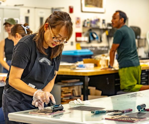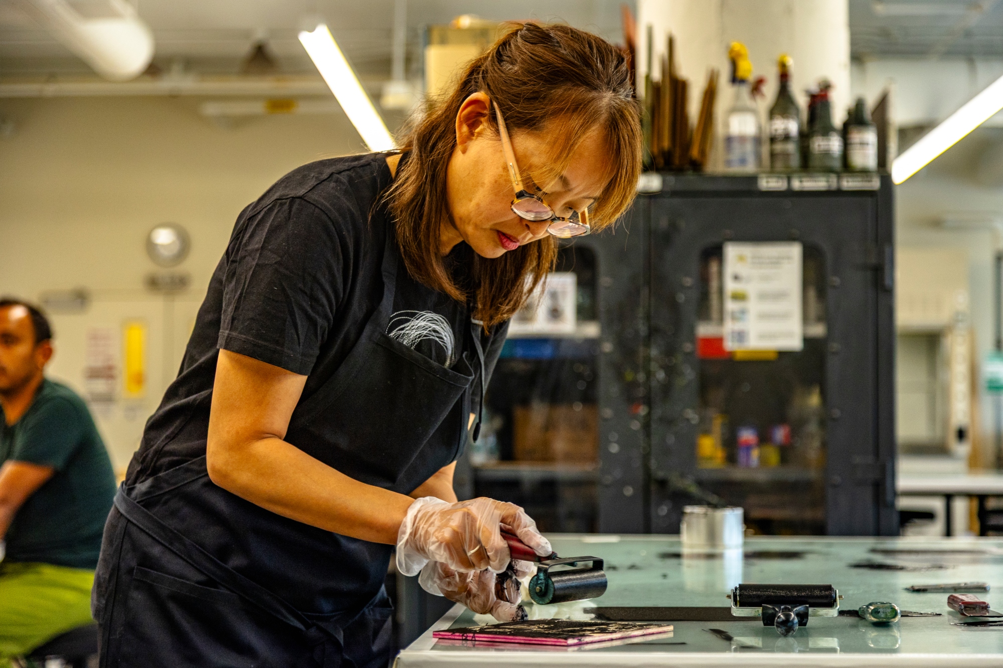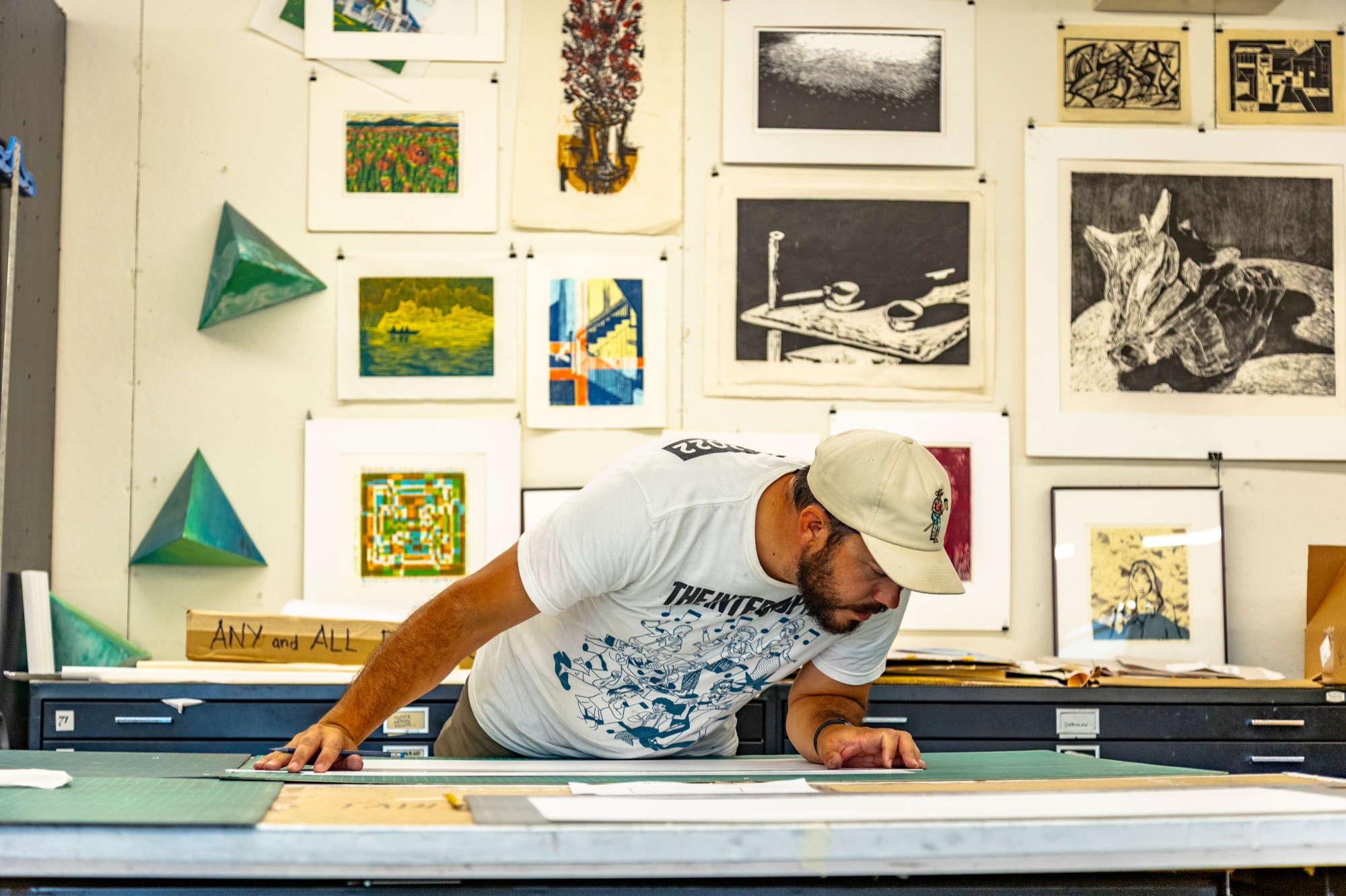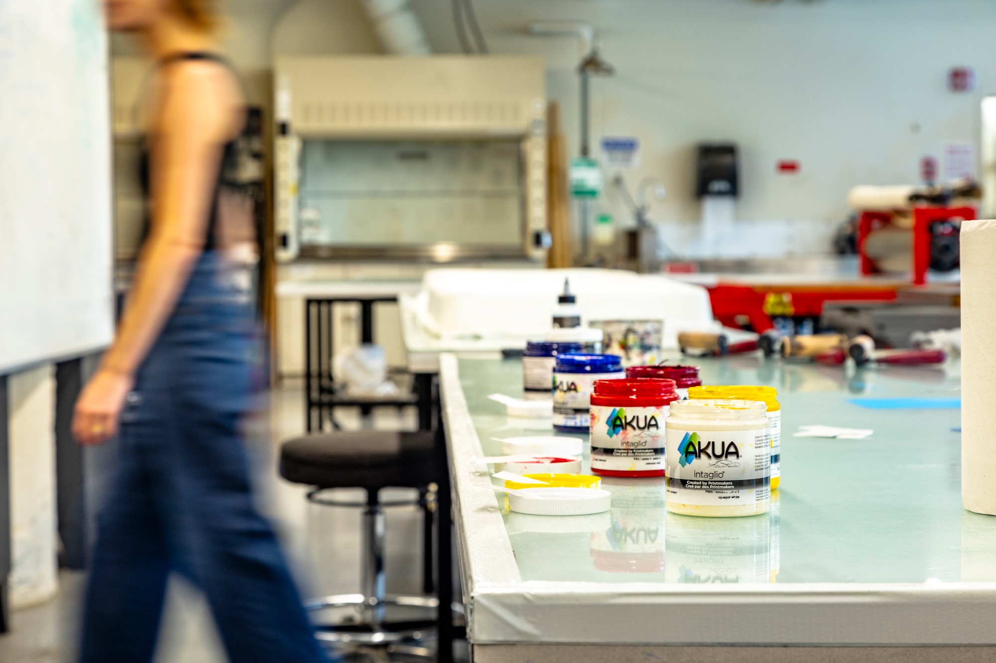 “Teaching printmaking is so methodical that I’m sort of guiding students from step A through to step Z, with a lot of ‘a-ha moments.’ Students may be getting a result that they weren’t necessarily expecting, but that happy accident in the print shop is usually an unexpected sort of step in a different direction that could take them even further.”