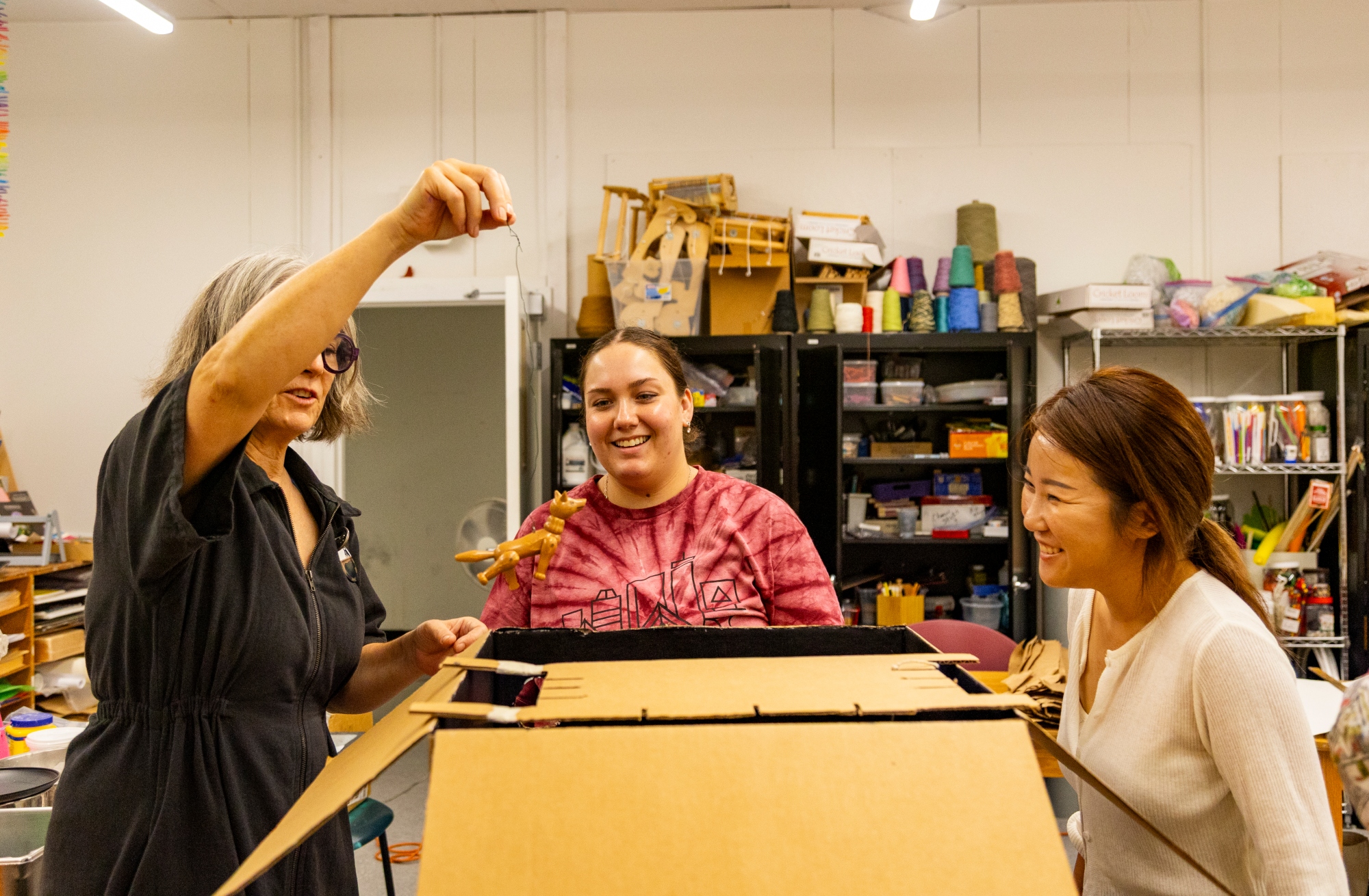 Additional experiences, including field trips, campus exhibitions, and spontaneous adventures with classmates, inspire and spark fresh ideas. Group workshops, pop-up demos, and make-and-take sessions provide practical tools you can immediately apply to your teaching. After the week intensive, return home to continue your investigations. The course culminates in the creation of a teaching artist portfolio and visual journal.