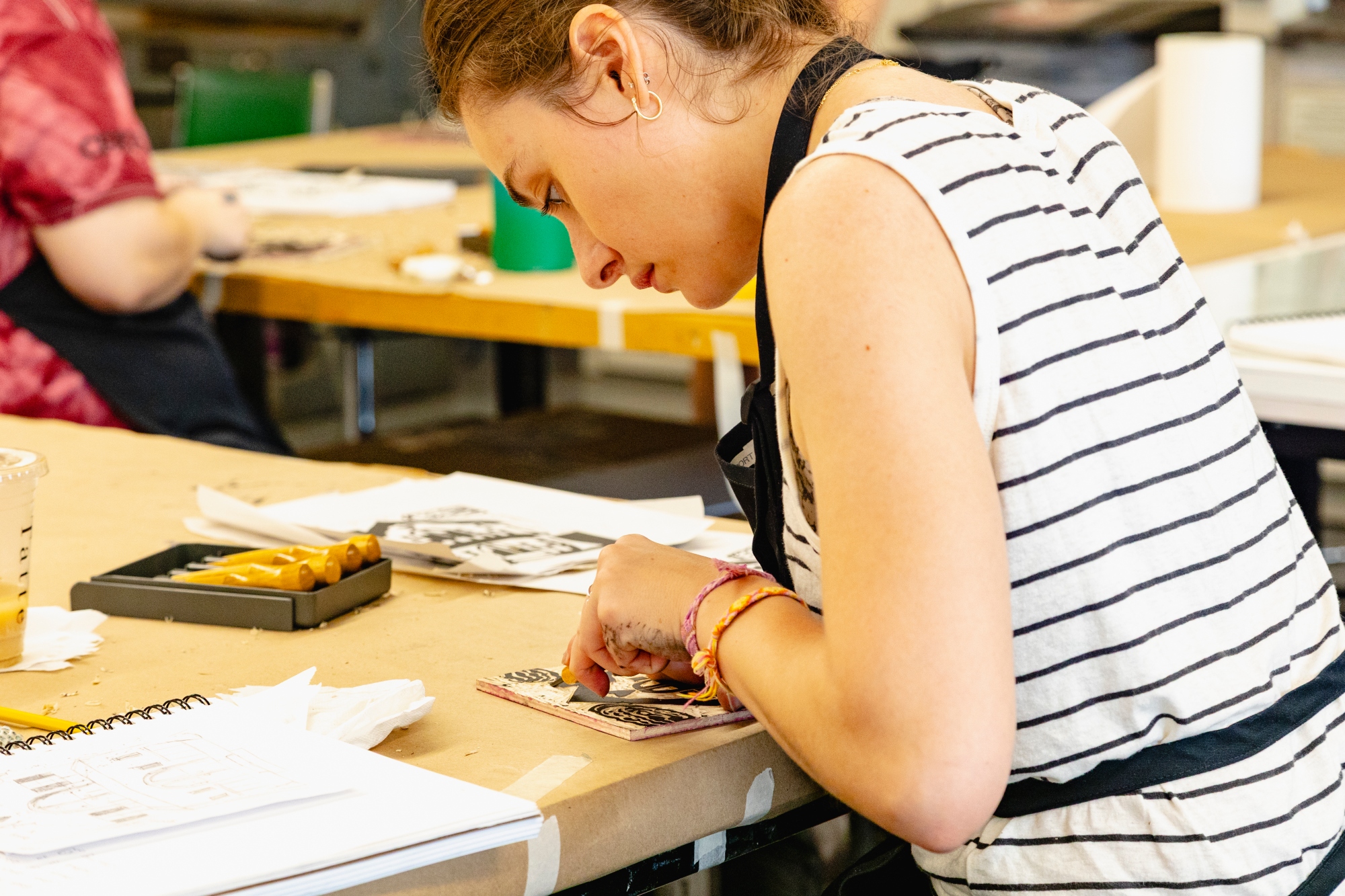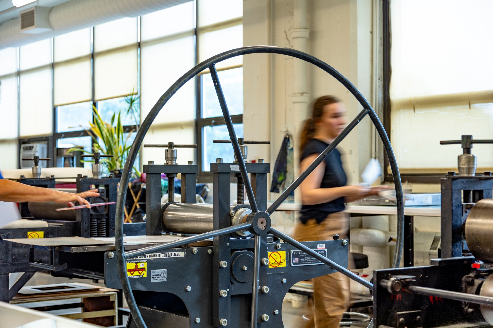 “Teaching printmaking is so methodical that I’m sort of guiding students from step A through to step Z, with a lot of ‘a-ha moments.’ Students may be getting a result that they weren’t necessarily expecting, but that happy accident in the print shop is usually an unexpected sort of step in a different direction that could take them even further.”