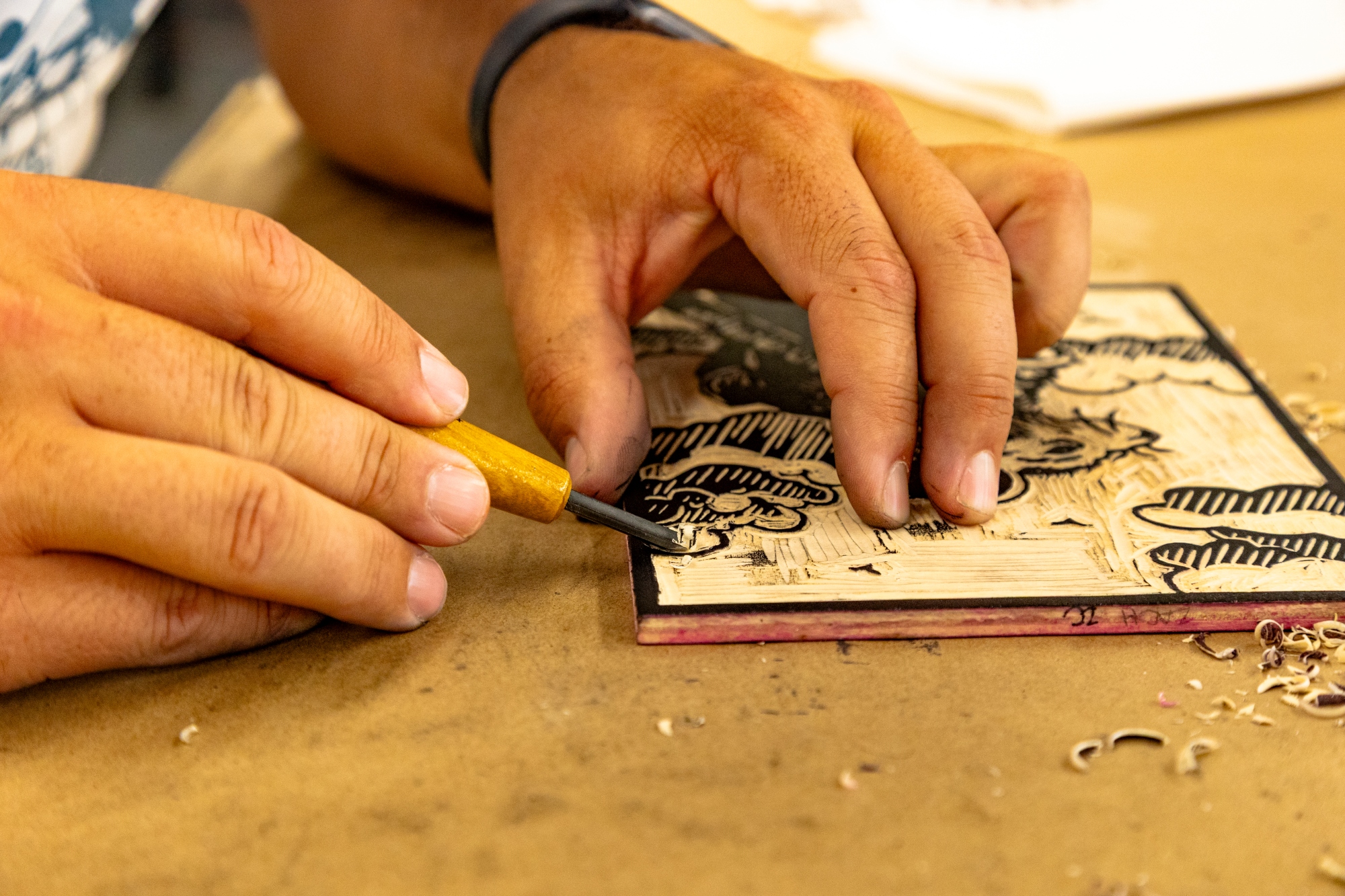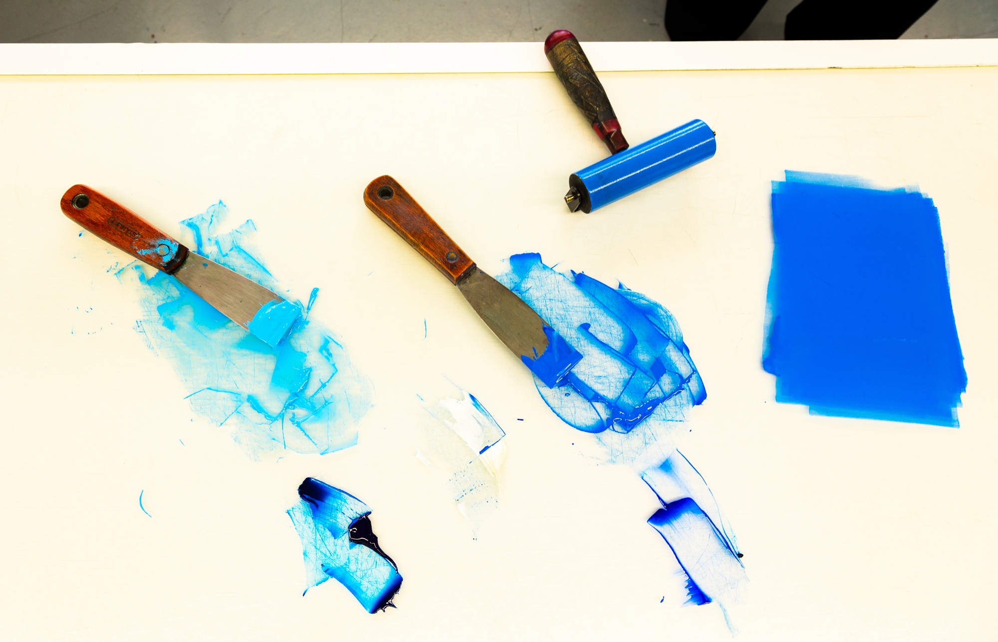 This course covers several printmaking techniques that can be employed in a fully equipped studio environment – or at home. The class starts with relief methods, quickly moves on to drypoint and monotype methods, and ends with cyanotype (an alternative photo technique). Basic to advanced techniques will be demonstrated, including carving, sharpening, stenciling, layering, inking, and registration, with both oil-based and water-soluble inks.