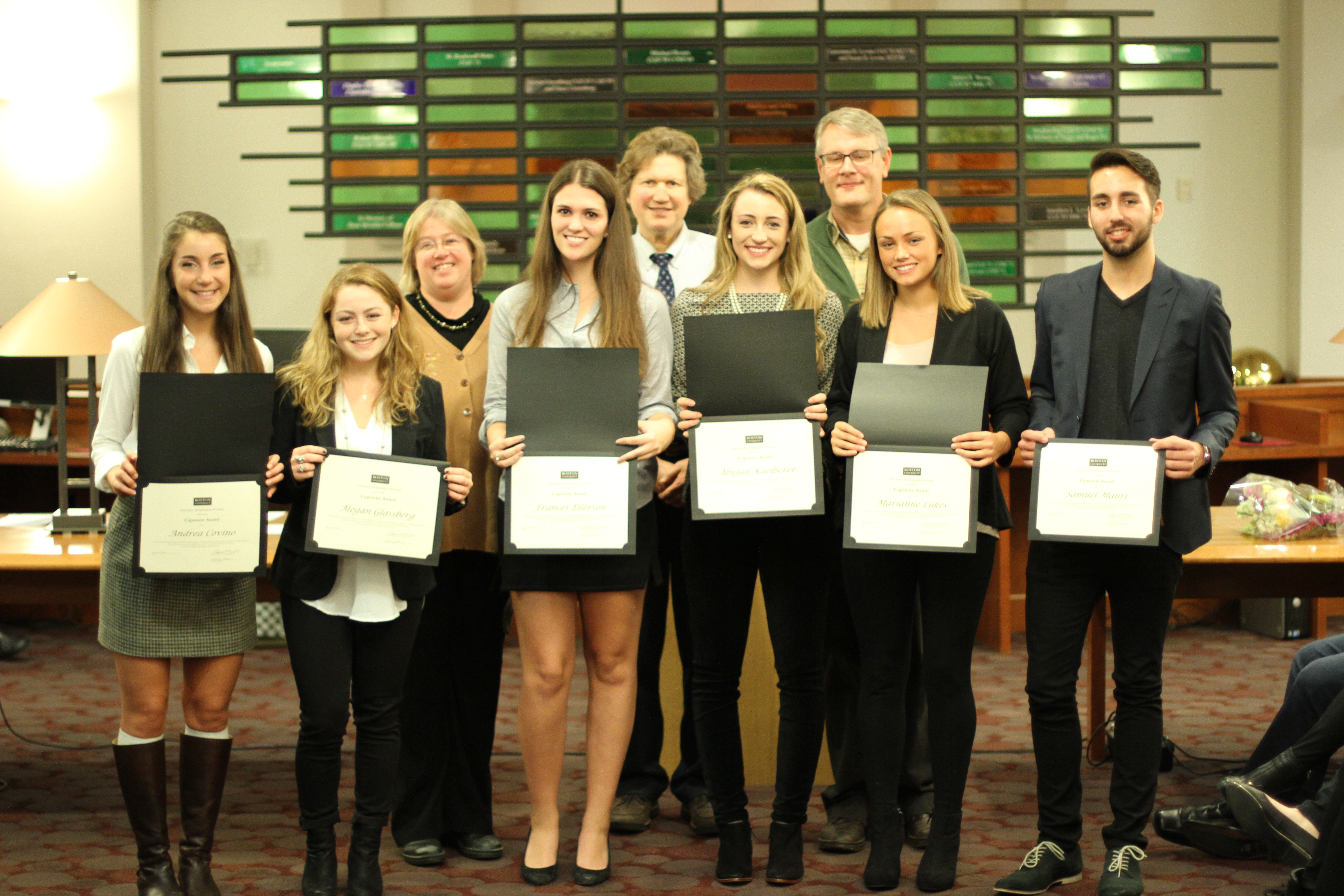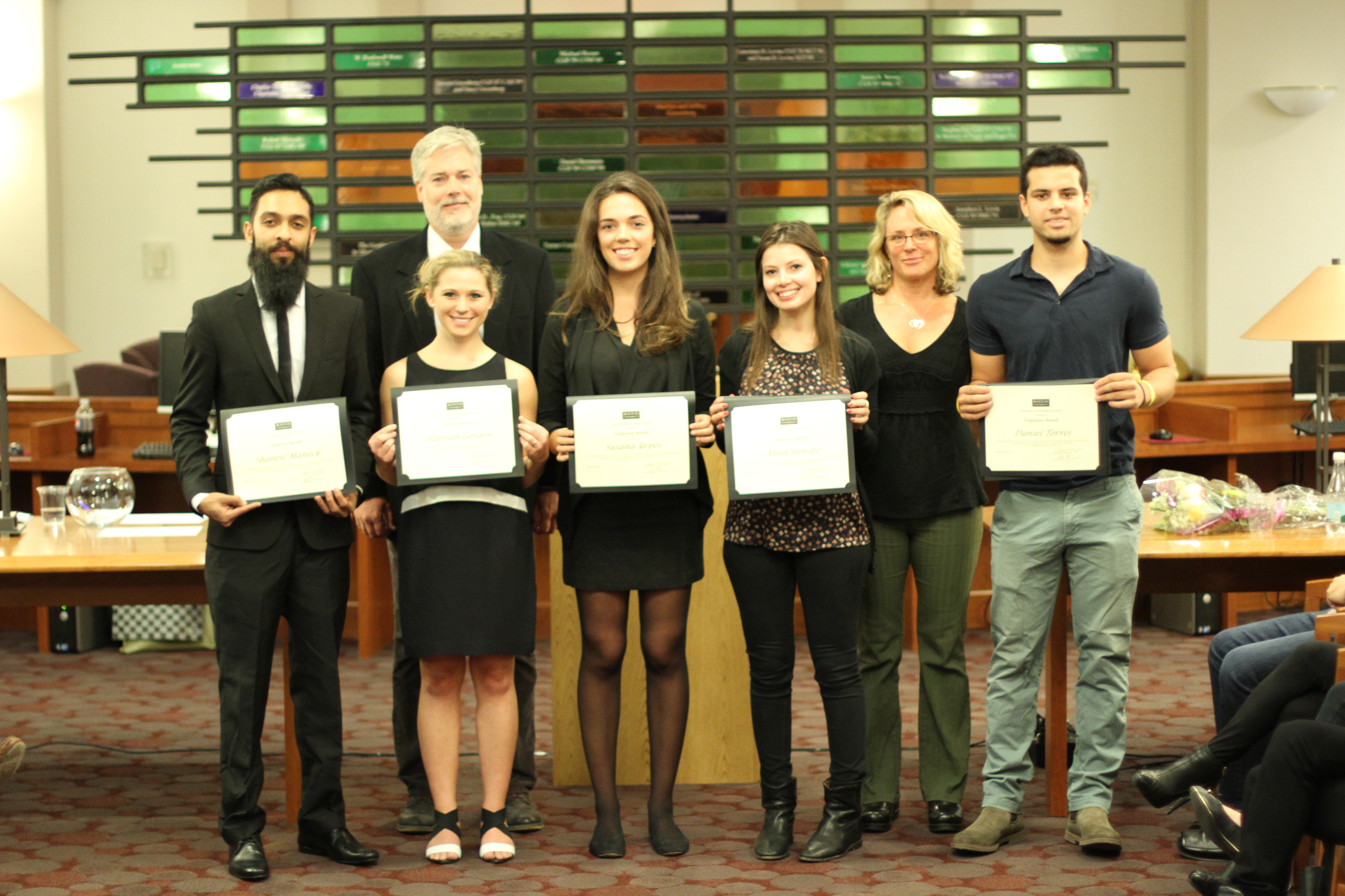 Each member of the winning groups received a certificate, and one group was chosen at random to attend a BU men’s hockey game in the Snapple luxury box at Agganis Arena, courtesy of the Dean of Students.