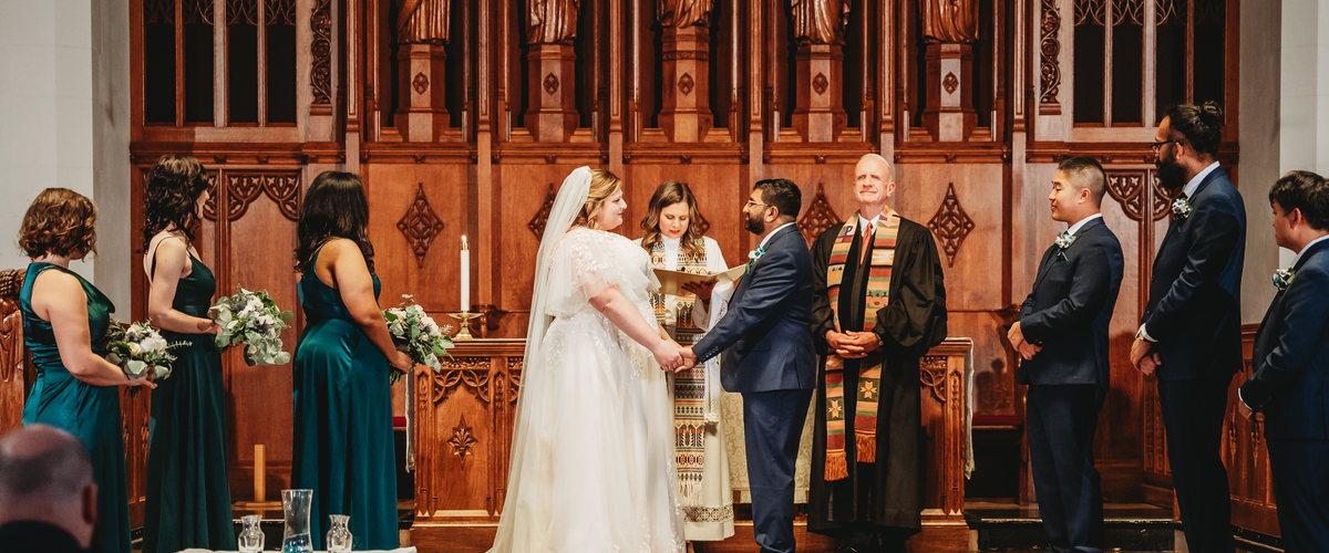 Please note: Wedding ceremonies at Marsh Chapel must be performed by ordained or credentialed members of a recognized religious or spiritual tradition. This may include officiants from Christian, Jewish, Muslim, Buddhist, Hindu, Baha’i, Wiccan, and other backgrounds. We do not permit weddings performed by Justices of the Peace or by individuals ordained solely online.