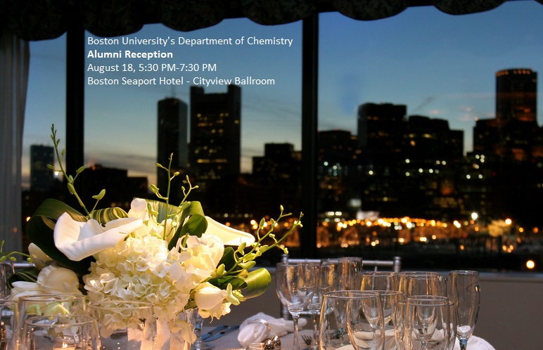 On August 18, the Department of Chemistry is hosting a special cocktail reception for Chemistry Alumni, 5:30PM-7:30PM at the Cityview Ballroom of the Boston Seaport Hotel and World Trade Center.