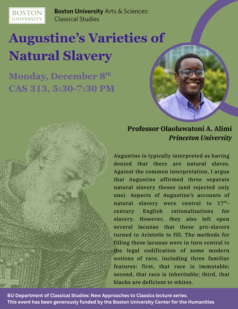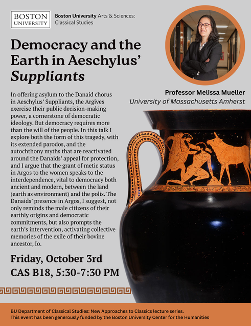 The New Approaches to Classics lecture series is generously funded by a grant from the Boston University Center for the Humanities.