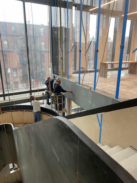 On Sunday, crews will return to the site to continue to install finishes in high-traffic areas, such as the ground floor, elevator lobbies, and stairways.