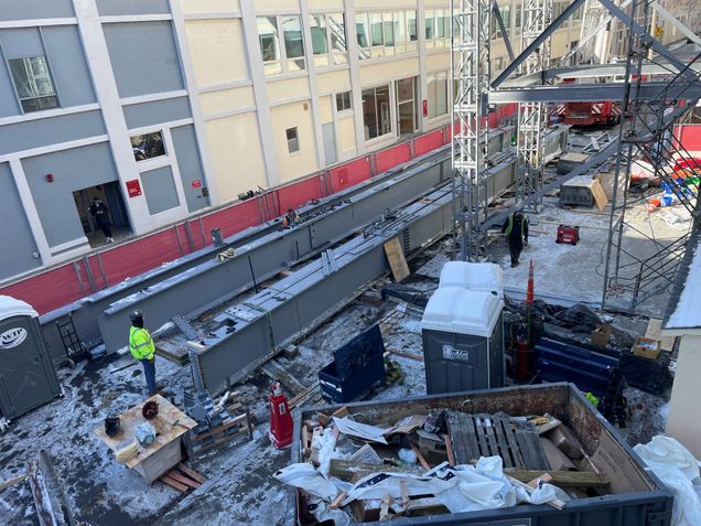 - Saturday, 1/25, and Sunday, 1/26, from 6:00 am until 8:00 pm, large steel beams will be lifted into place, which will create a bridge over 111 Cummington Mall.