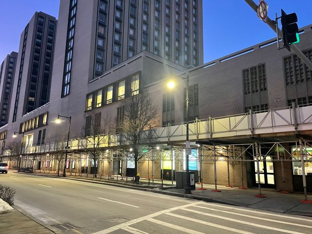 - Crews will continue installing overhead protection, shoring towers, and scaffolding at the rear alley behind the building.