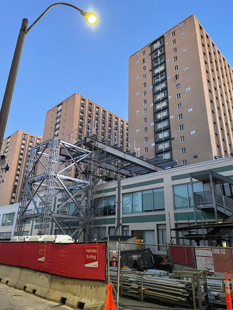 - Crews will continue working on the staging support steel at the low roofs (east and west of Tower A) adjacent to student rooms. For privacy, please keep blinds, drapes, and window treatments closed.