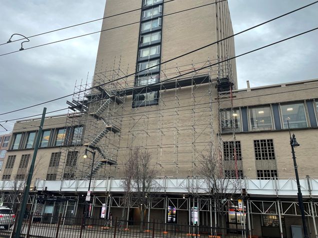 - Crews will continue installing overhead protection, shoring towers, and scaffolding at the rear alley behind the building.