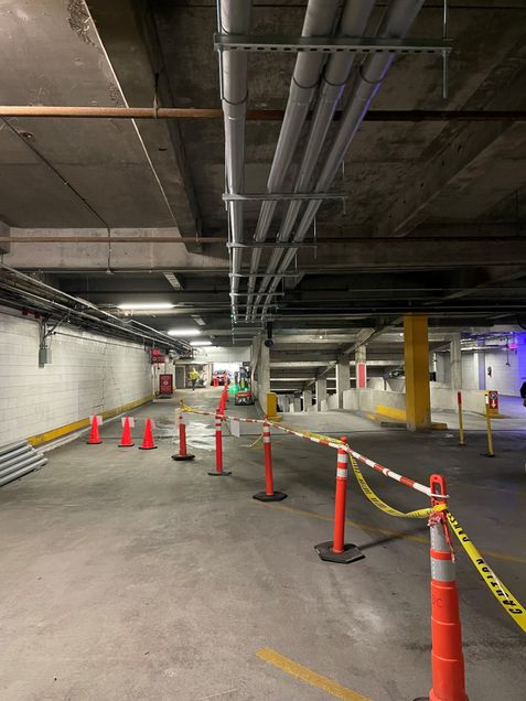 - Electricians will be running temporary power wiring and conduits throughout the parking garage.
