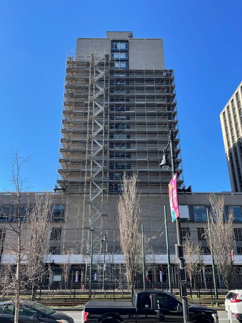 - Crews will continue installing overhead protection and scaffolding at the rear alley behind the building.