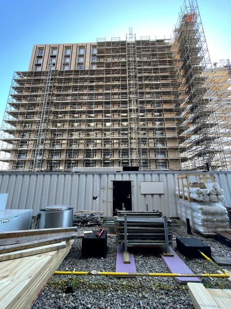 - There will be intermittent drilling noise due to crews working on scaffolding connections to the build.