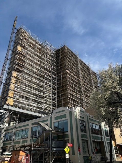 - There will be intermittent drilling noise due to crews working on scaffolding connections to the build.