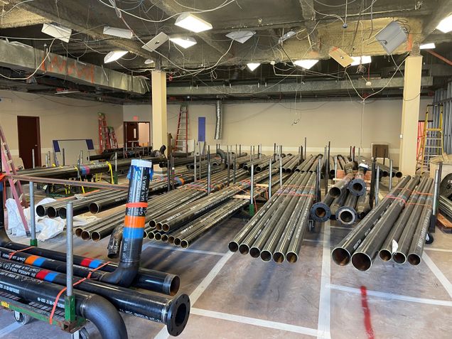 - Crews are reworking and relocating the existing mechanical, electrical, plumbing, and fire protection systems.