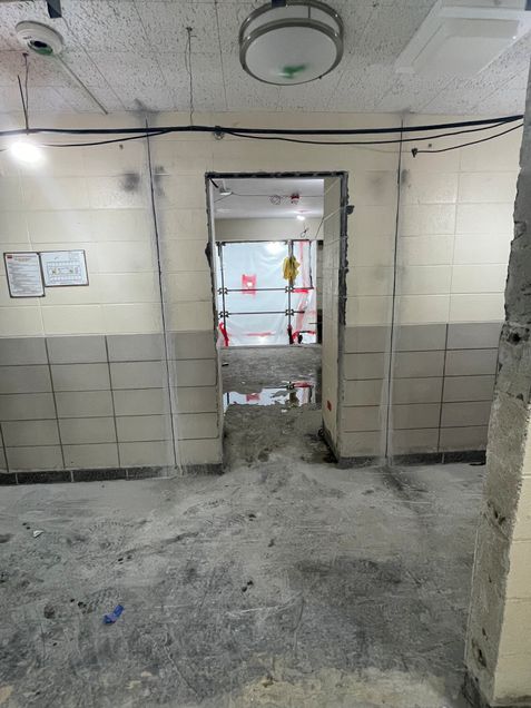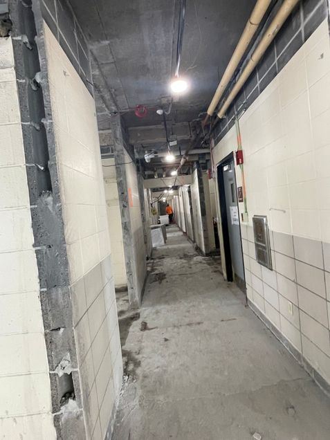 - Crews are reworking and relocating the existing mechanical, electrical, plumbing, and fire protection systems.
