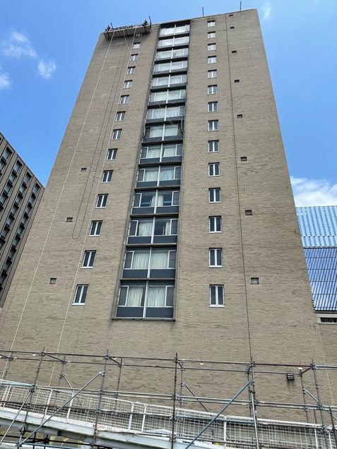 - Masons will begin brick veneer restoration work, washdown, selective demolition, and installing restoration anchors.