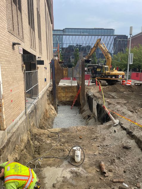 - Crews from Flett are excavating in the front of the building for new utilities (as required by the city) during the 3rd shift.