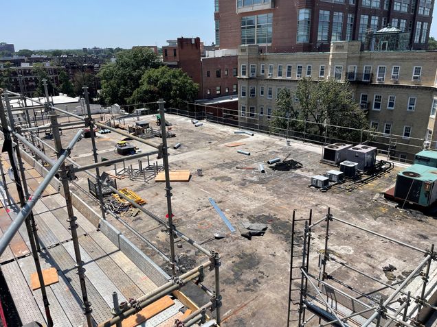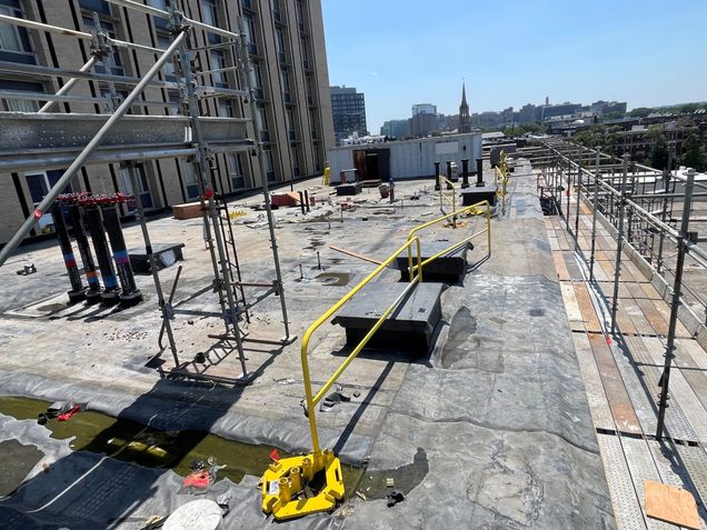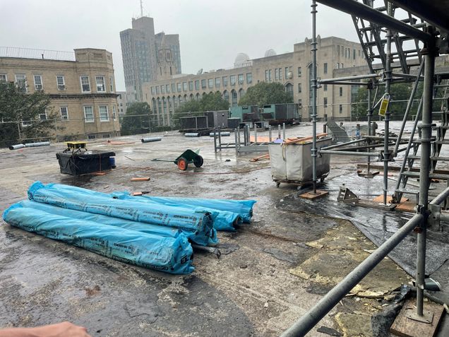 - Crews will begin removing the existing rubber roof membrane and begin installing insulation.