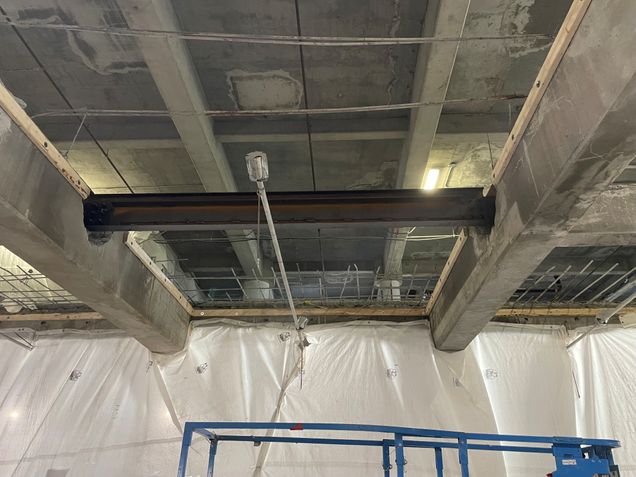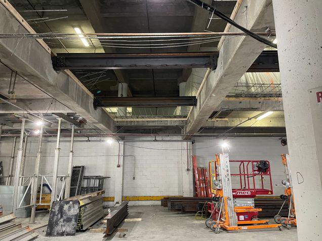 - Crews will begin installing support steel for the new boiler room, for this, materials will be loaded onto the roof level using a crane.