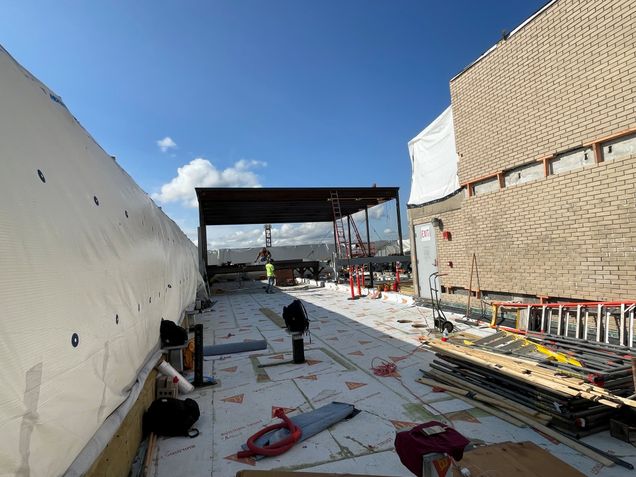 - Crews will use the low roofs as a laydown area for tools, supplies and materials.