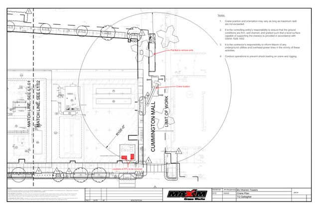 - A large crane will be set up in the street to hoist concrete to Tower A rooftop on Wednesday, 4:00 AM – 8:00PM.