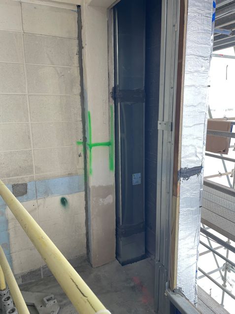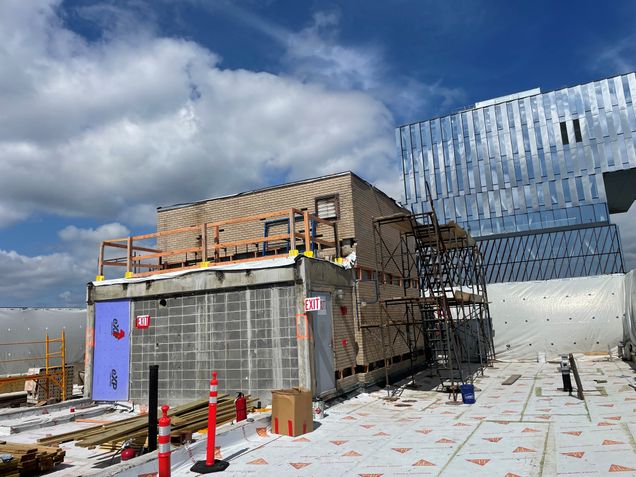 - Masons will be restoring the brick veneer on the existing north stair and elevator headhouse.