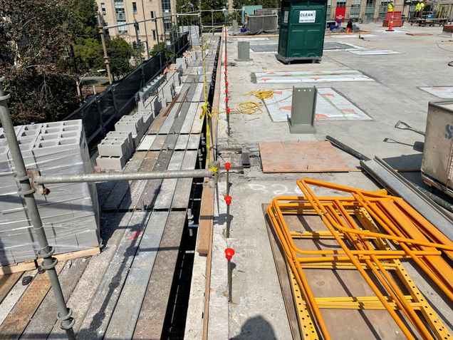 - Crews will be placing concrete for knee walks and the mechanical penthouse floor slab.