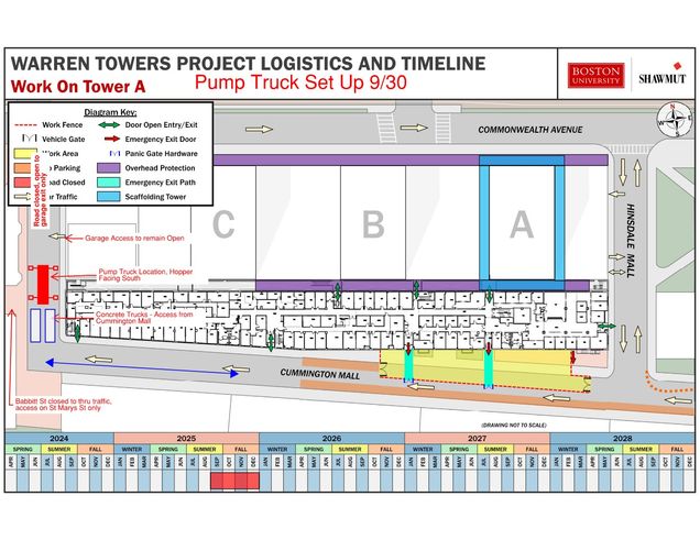 - On Tuesday, September 30th, a concrete pump truck will be set up in the street for the West Terrace topping slab placement.