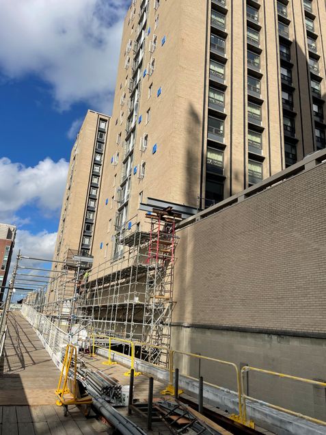 - The scaffolding crew will install staging and shoring under cantilevered staging support steel at Tower B.
