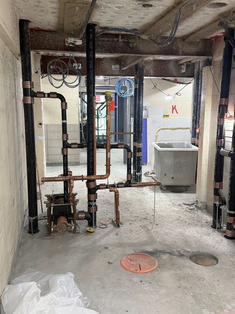 - Plumbers will continue installing new water and drain lines in the basement, 1st, 2nd, and 3rd levels.