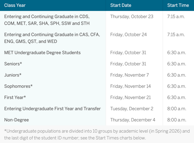 (See Registration Dates & Times on the Registrar calendar webpage for the most up to date information.)