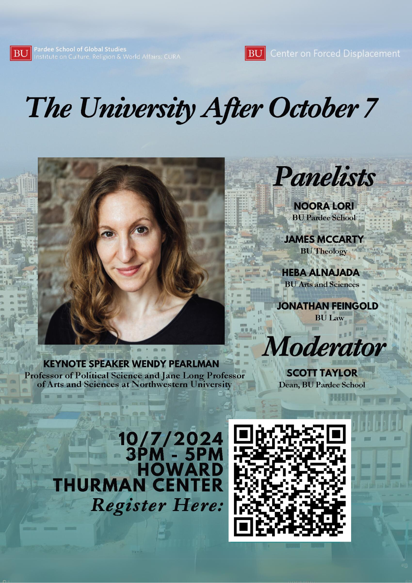 Date: October 8, 2024 | 3:00 PM - 5:00 PM Location: Howard Thurman Center, Boston University Keynote Speaker: Wendy Pearlman, Read more