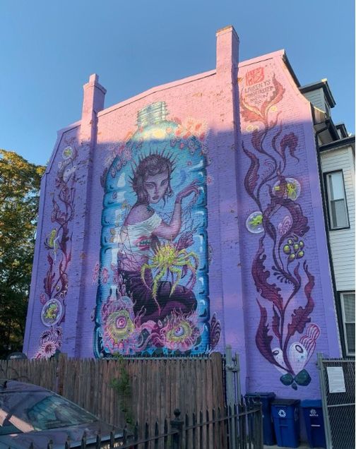 Figure 4: Lauren YS, Plastic Pandora, 2021. Mural. 62 Chelsea Street, East Boston. Photograph by the author.