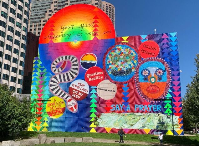 Figure 8: Jeffrey Gibson, your spirit whispering in my ear, 2024. Mural. Rose Kennedy Greenway, Boston. Photograph by the author.