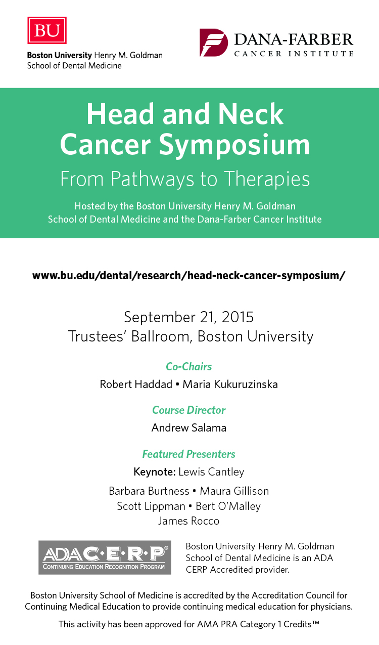 Over the last several months, members of the Oral Cancer Research Initiative (OCRI) have been working to organize the second annual head & neck symposium titled, Head & Neck Cancer Symposium: From Pathways to Therapies which will take place on Monday, September 21, 2015. This event builds upon the success of last year’s inaugural meeting, Head & Neck Cancer Symposium: Translating Research to Therapy and Cure, which boasted strong attendance, robust discussions, and outstanding presentations from leading head and neck cancer researchers and clinicians.