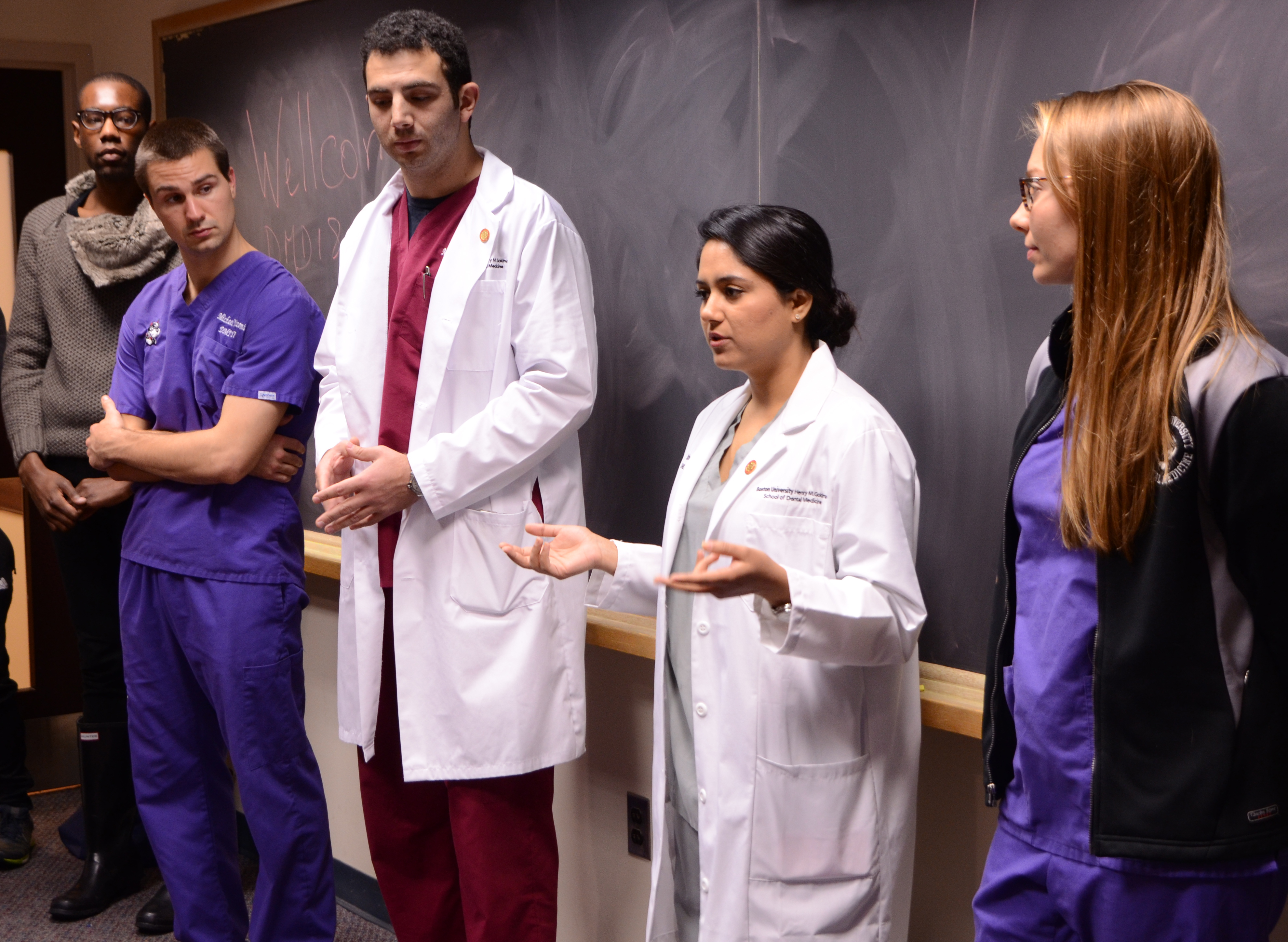 This year’s Research Fair was an informative and well attended event. The participants listened to testimonials from their fellow students who have taken part in research at GSDM. SRG vice-president Mohamed Bayoumy DMD 17 made introductions and gave a brief overview of the research options available. One by one, each presenter shared their background in research and how they benefited from the experience. After the presentation, Assistant Director of Pre-doctoral Research Afaf Hourani and Director of Community-Based Education Dr. Ana Zea fielded questions from the group. Ms. Hourani also distributed informative materials on the APEX and IREC programs, research areas, and faculty mentors. Following the meeting, the SRG made themselves available to meet one on one with any participants who may have had additional questions or wanted to learn more.