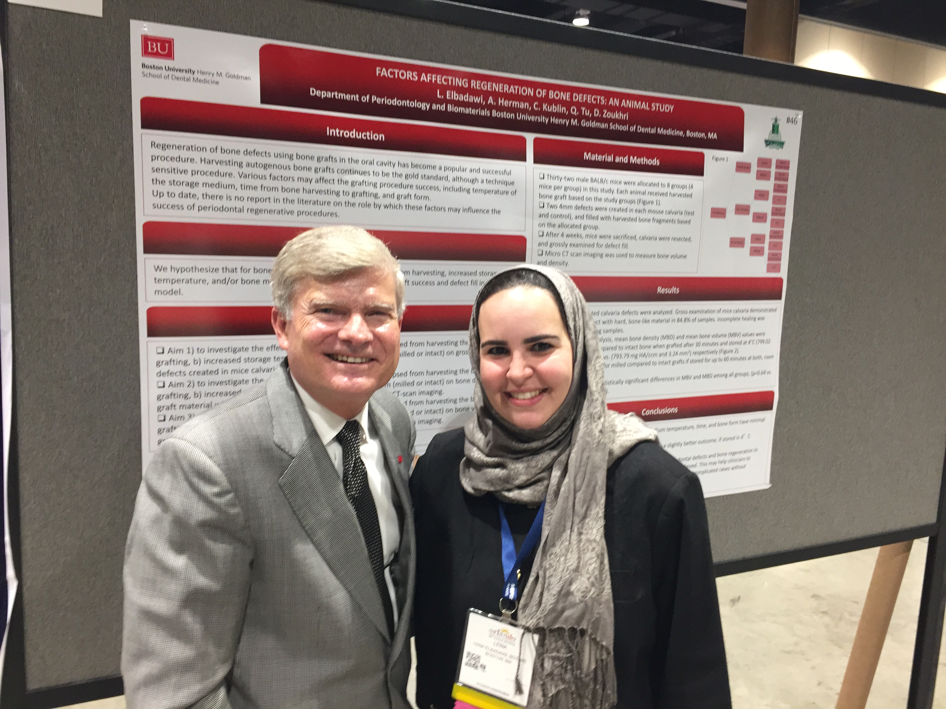 “Bone grafting in periodontology is a very common surgical procedure, I was very pleased to have many periodontists and attendees of the meeting stop by my poster and show much interest in my research, especially since it is something they encounter on daily basis in clinical practice,” said Dr. Elbadawi.
