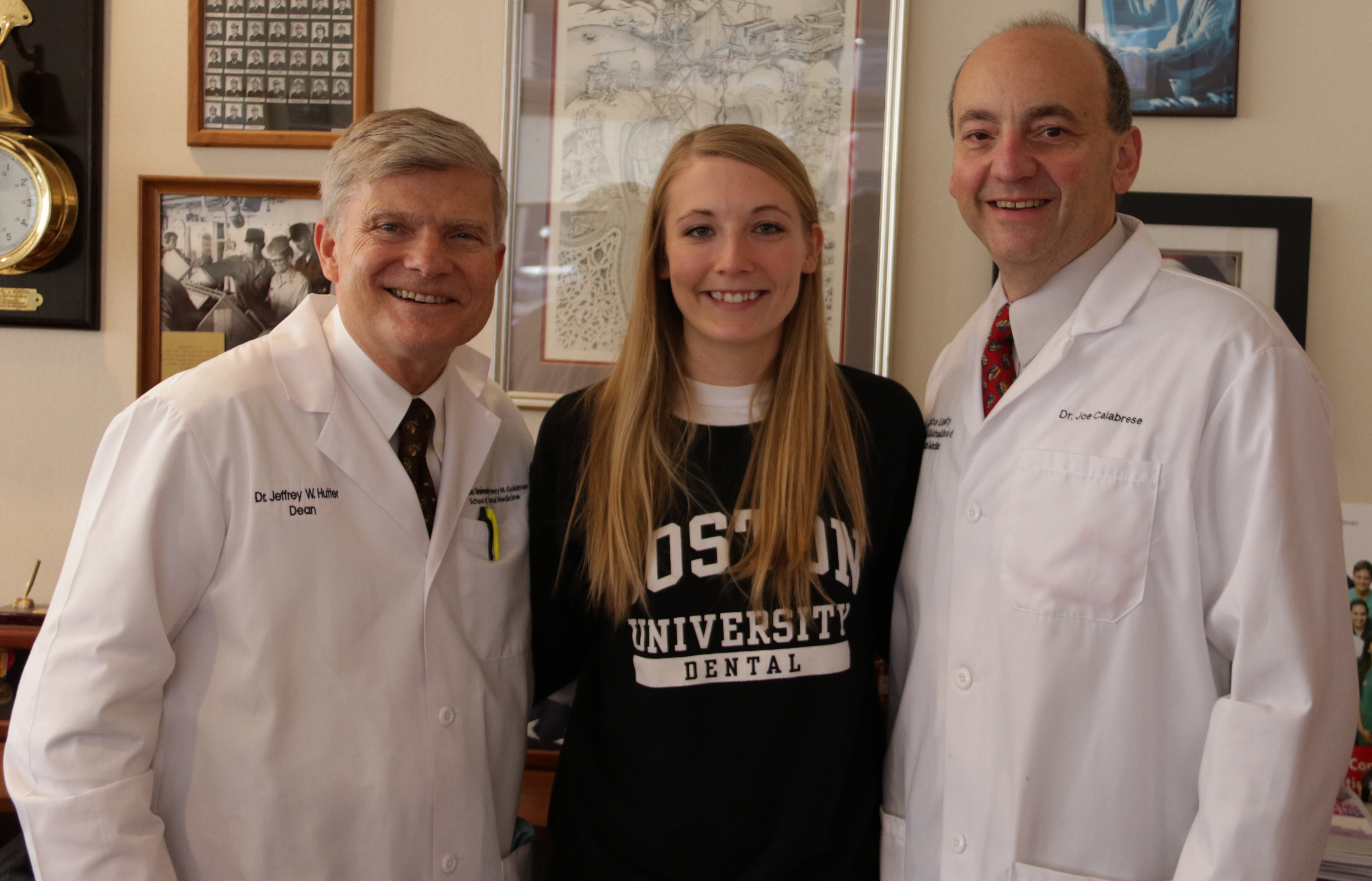 On Friday March 25, 2016, Dean Jeffrey W. Hutter and Assistant Dean of Students Dr. Joseph Calabrese met with second-year DMD student Adela Brodek to formally congratulate her on receiving the 2016 American Dental Association (ADA) Foundation Dental Student Scholarship Award.
