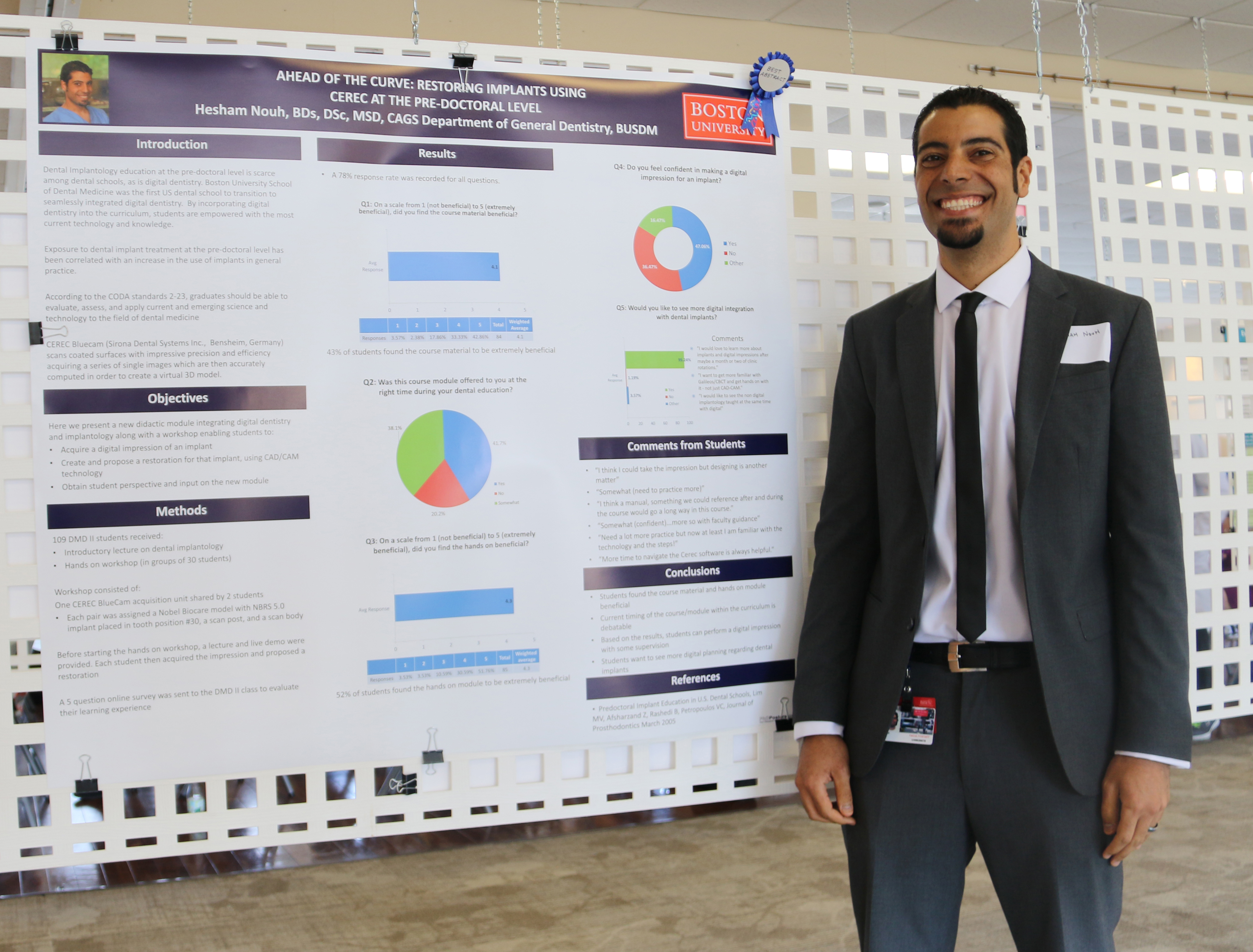 - Hesham Nouh, Clinical Assistant Professor in the Department of General Dentistry, “Ahead of the curve: restoring implants using CEREC at the pre-doctoral level.”