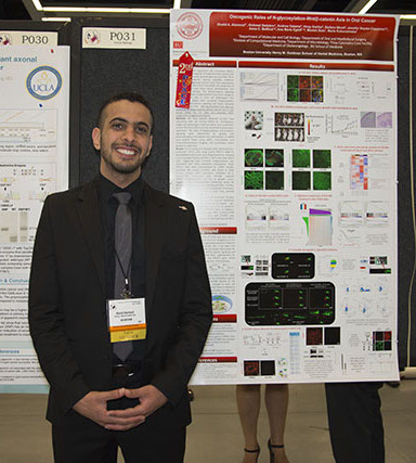 Dr. Khalid Alamoud, Ortho 19, DScD 19, at the Henry M. Goldman School of Dental Medicine (GSDM), presented his recent research conducted in the Department of Molecular & Cell Biology at the 9th International Conference on Head and Neck Cancer: Technology Transforming Head and Neck Cancer Care. Dr. Alamoud is a post-doctoral student in the Department of Orthodontics and the Department of Molecular & Cell Biology at Henry M. Goldman School of Dental Medicine (GSDM). This event was held in Seattle, Washington, from July 16 to 20, 2016, and was hosted by the American Head & Neck Society. Dr. Alamoud’s poster, Oncogenic Roles of N-glycosylation-Wnt/ β-catenin Axis in Oral Cancer, was awarded second place in the Cancer Biology category from a total of 68 presentations.