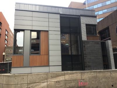 As part of the approval process, BPDA reviewed a “mock-up” wall built by the project’s construction team that included examples of the materials, colors, compositions, and other construction details that will be part of the final building. This allowed BPDA to see how the renderings of the project will translate into real life. The “mock-up” wall sits west of the main GSDM building on East Newton Street.