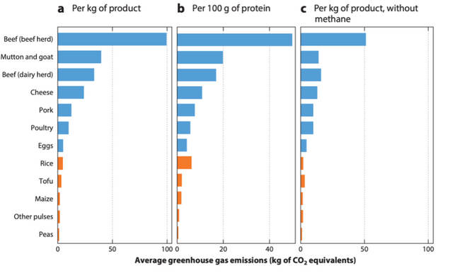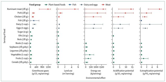 The EAT-Lancet Commission on healthy diets from sustainable food systems summarizes these impacts, comparing beef to other foods (Figure 2).