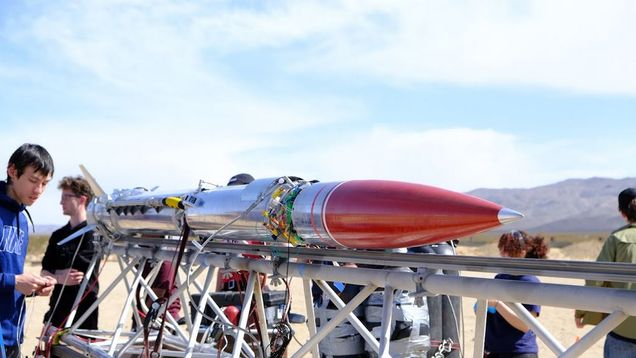 After they spent seemingly every spare moment for two years designing, building, and testing the 17-foot-long rocket, 19 of the students traveled to the Mojave Desert for the club’s first attempt at this feat, on March 1. They had to disassemble the rocket in Boston, ship it in two parts by freight to Los Angeles, fly themselves there, rent a truck and cars, collect the rocket parts, drive to the Friends of Amateur Rocketry launch site, and reassemble Icarus—this last step alone a day-long process.
