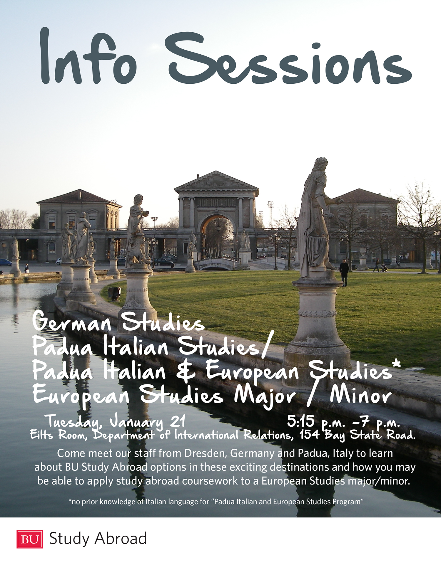 Interested in European Studies? Join us on Tuesday, January 21, for an info session with representatives from BU’s Study Abroad programs in Dresden and Padua.