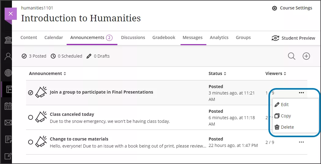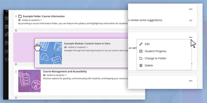 This page explores the key differences between Blackboard Original and Ultra to help you understand the new and improved design and features available in Ultra. As you navigate the migration from Original to Ultra, this guide can help you understand how certain course elements looked in Original and will look once you move to Ultra. By understanding the options available to you, you’ll be able to create a more engaging and accessible experience for all your students.