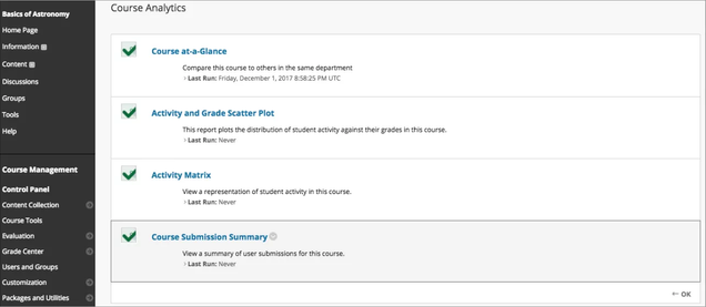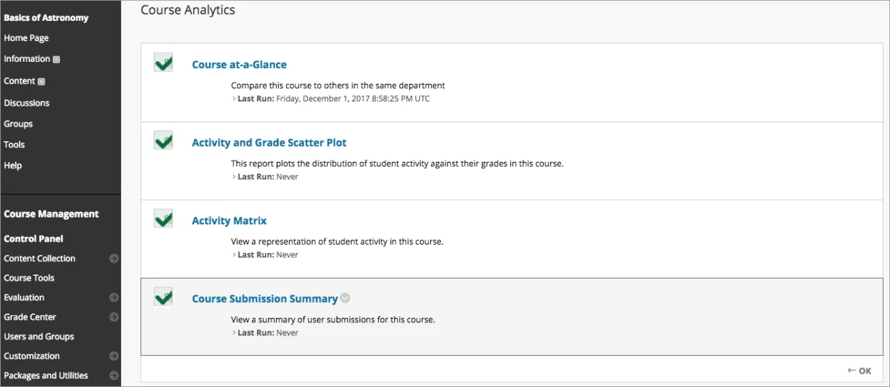 Built-in analytics tools provide real-time insights into student engagement and course activity.