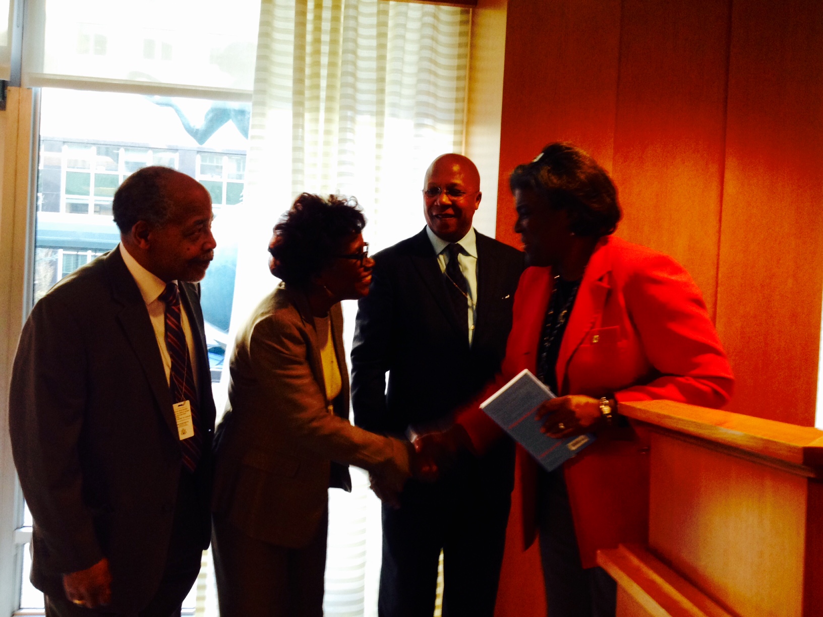 Professors Heywood & Blakely presenting a copy of “African Americans in U.S. Foreign Policy” to the Counselor of the State Department in D.C. More than 100 copies were bought by the attendees!