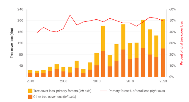 图2:2003-2023年喀麦隆不同类型树木覆盖损失情况