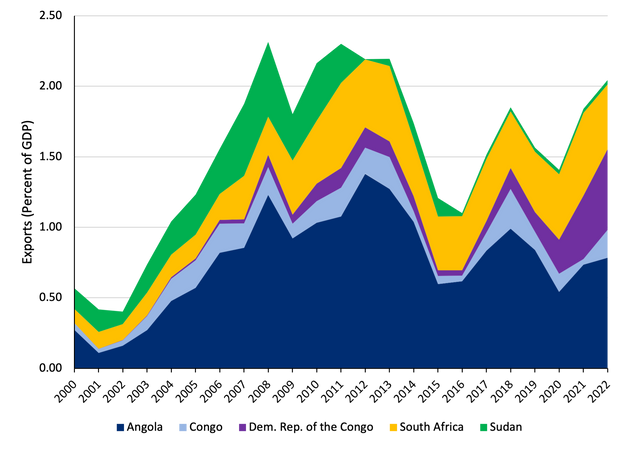 Figure 6: Africa Exports to China by Country, 2000-2022